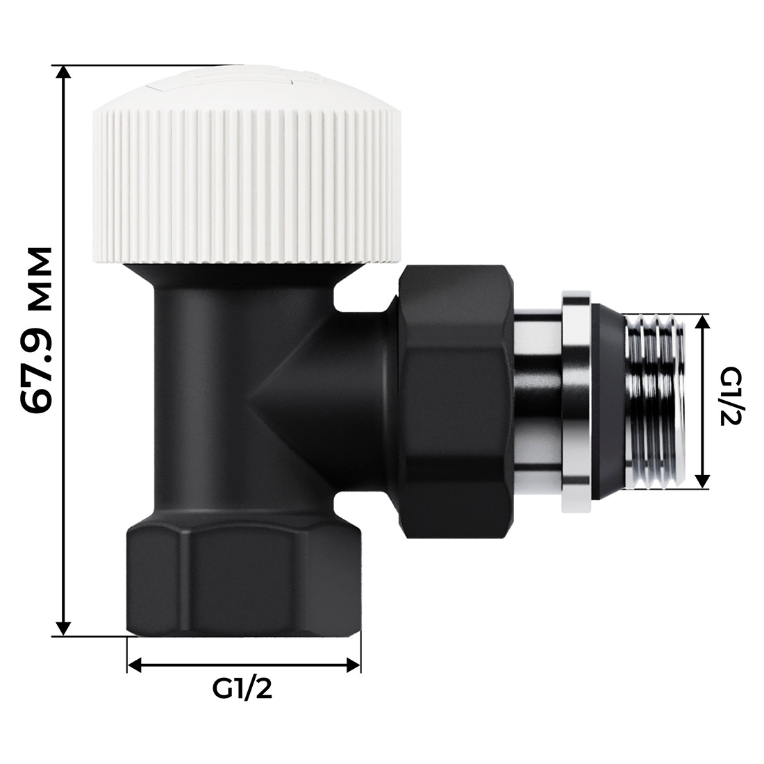- Подключение к радиатору – 1/2", подключение к системе отопления – 1/2".