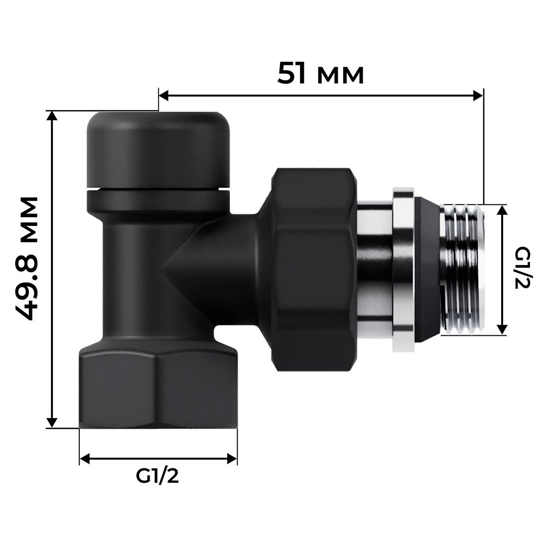 Набор термостатический угловой Royal Thermo Design 1/2" М30х1,5 (черный)