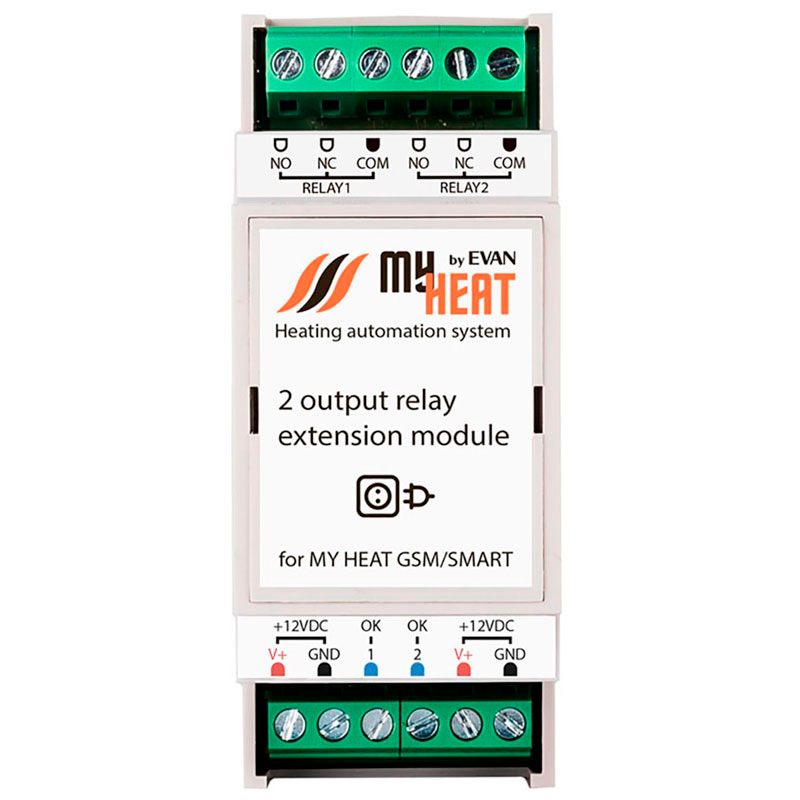 Блок реле на 2 выхода MyHeat RL2 предназначен для коммутации двух каналов электрической нагрузки с помощью электромагнитных реле. Модуль подключается к контроллерам MyHeat GSM и MyHeat Smart по управляющим проводам и используется в составе автоматизированных систем отопления и горячего водоснабжения. Устройство позволяет управлять нагрузками до 3 А при напряжении до 250 В AC или 30 В DC. После сбоев питания блок автоматически восстанавливает работу. Компактный корпус с креплением на DIN-рейку обеспечивает удобный монтаж в распределительном щите.