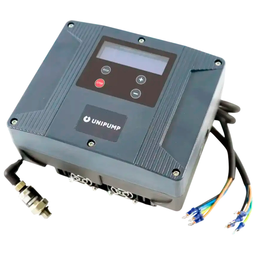 Трехфазный частотный преобразователь Unipump FCP-7.5MT предназначен для автоматического управления асинхронными двигателями трехфазных насосов и поддержания заданного давления в системе водоснабжения. Применяется в системах с внешним датчиком давления за счет изменения частоты вращения электродвигателя насоса.