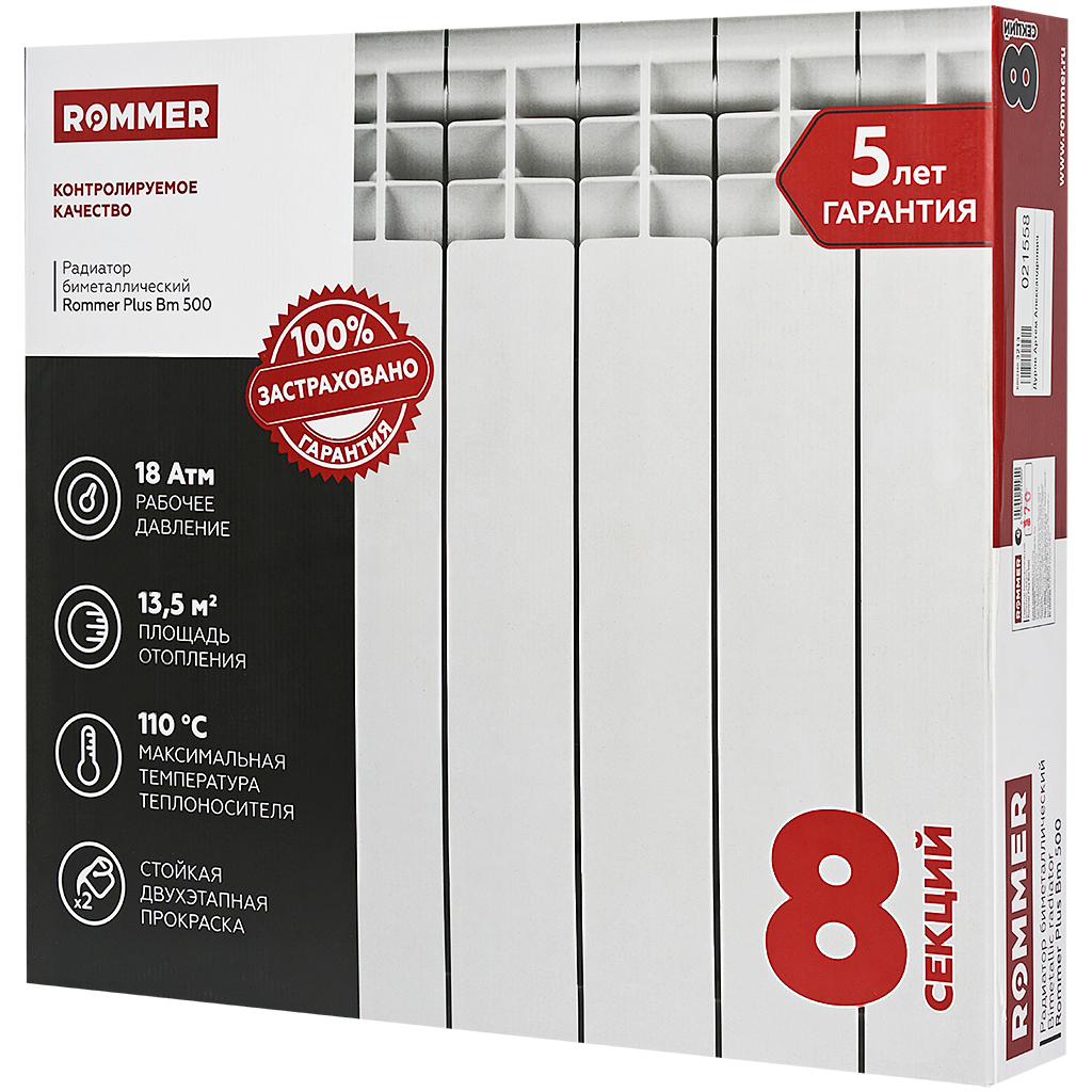 Биметаллический радиатор Rommer Plus Bm 500 8 секций соответствует нормам европейских и российских стандартов качества. Коллектор радиаторов выполнен полностью из стали.