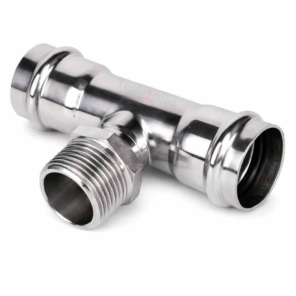 Пресс-тройник НР 35x1x35 TIM из нержавеющей стали. Высококачественный пресс-фитинг из нержавеющей стали с уплотнением из EPDM для 100% герметичности. Соединение – бесштуцерное, обжатие производится с помощью пресс-инструмента V-профиля.