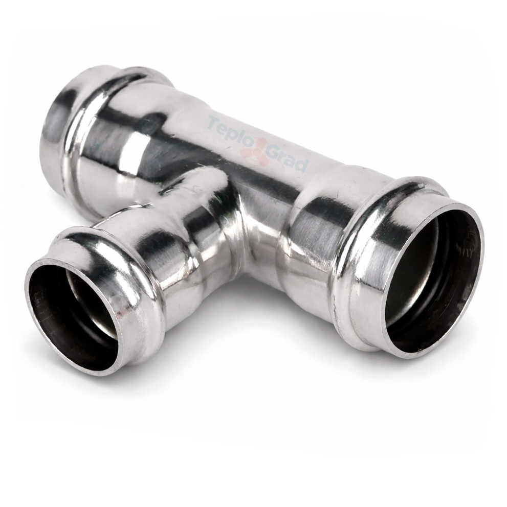 Пресс-тройник трехраструбный 35x22x35 TIM из нержавеющей стали. Высококачественный пресс-фитинг из нержавеющей стали с уплотнением из EPDM для 100% герметичности. Соединение – бесштуцерное, обжатие производится с помощью пресс-инструмента V-профиля.