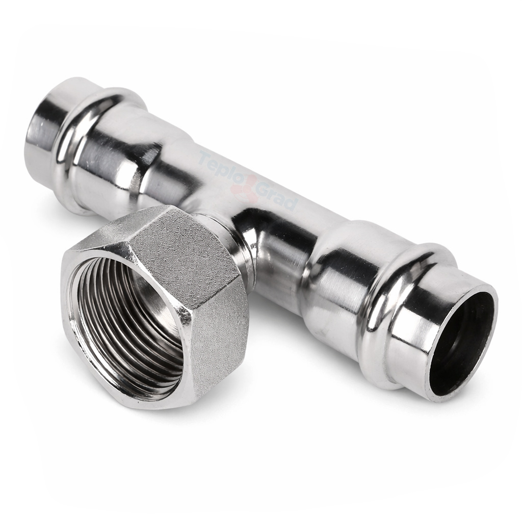 Пресс-тройник ВР 35x1x35 TIM из нержавеющей стали. Высококачественный пресс-фитинг из нержавеющей стали с уплотнением из EPDM для 100% герметичности. Соединение – бесштуцерное, обжатие производится с помощью пресс-инструмента V-профиля.