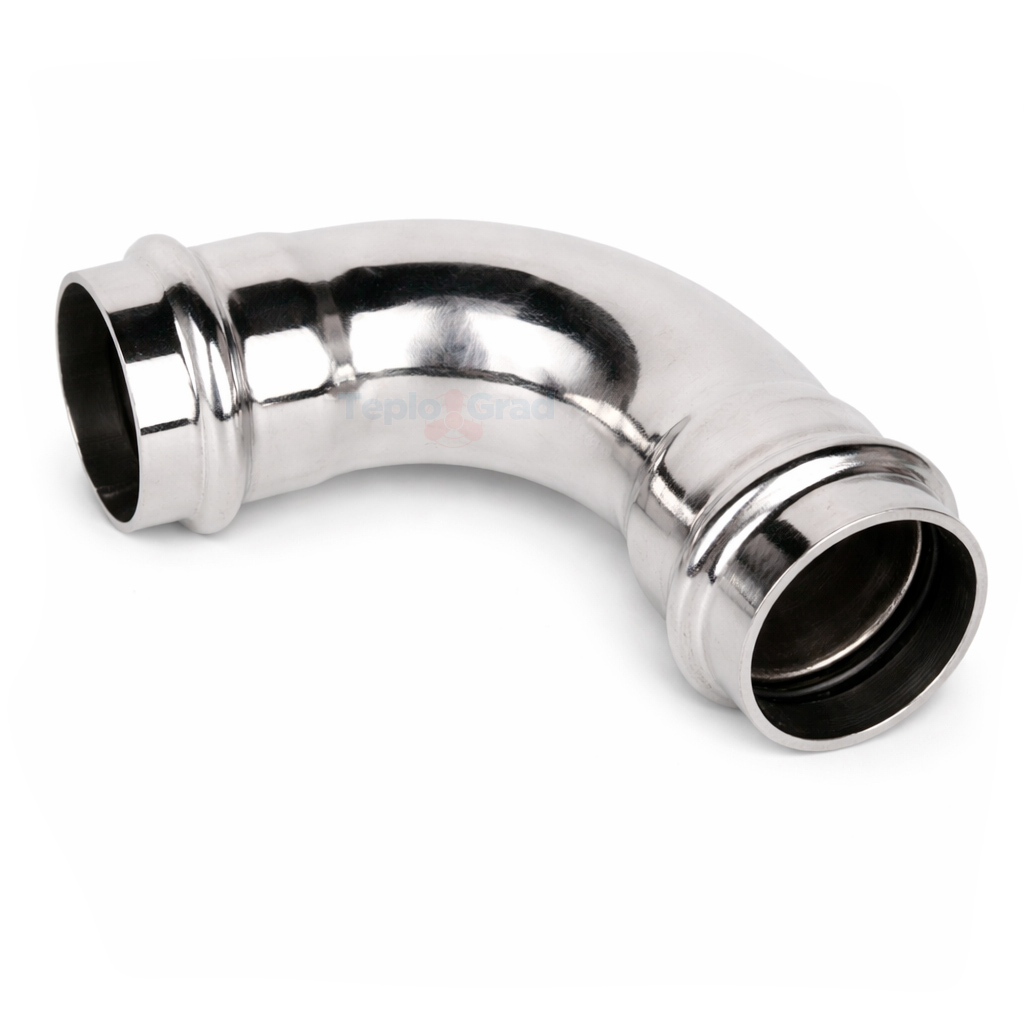 Пресс-угольник двухраструбный 90° 35 TIM из нержавеющей стали. Высококачественный пресс-фитинг из нержавеющей стали с уплотнением из EPDM для 100% герметичности. Соединение – бесштуцерное, обжатие производится с помощью пресс-инструмента V-профиля.
