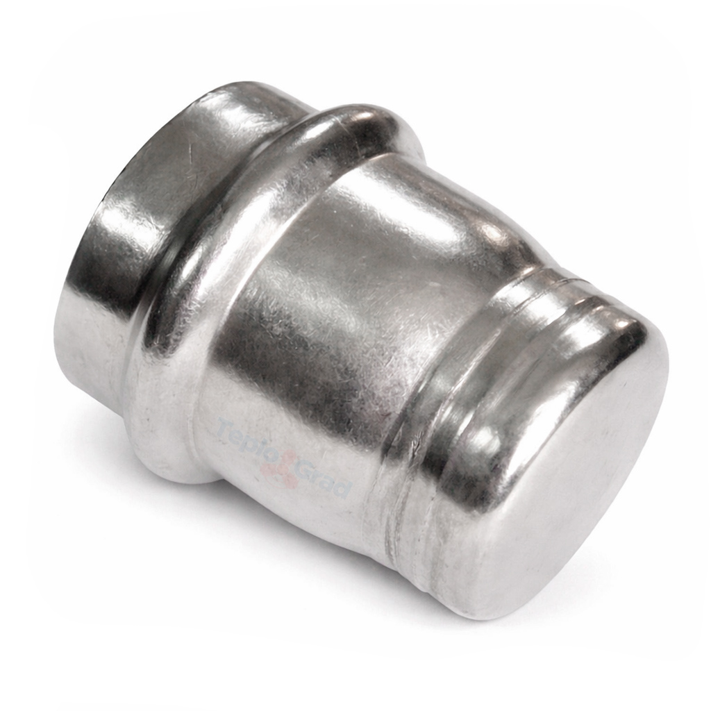 Пресс-заглушка 22 TIM из нержавеющей стали. Высококачественный пресс-фитинг из нержавеющей стали с уплотнением из EPDM для 100% герметичности. Соединение – бесштуцерное, обжатие производится с помощью пресс-инструмента V-профиля.