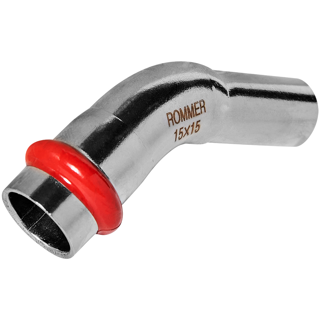 Угольник однораструбный 45° 15 Rommer из нержавеющей стали прессовой