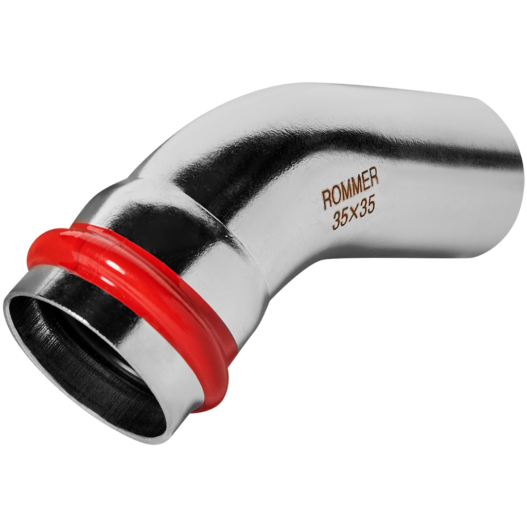 Угольник однораструбный 45° 35 Rommer из нержавеющей стали прессовой