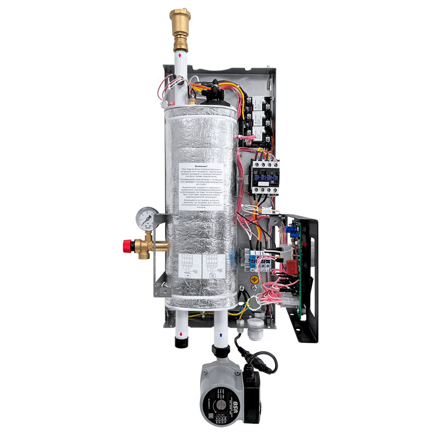 - Основные элементы: теплообменник, блок ТЭНов, панель управления, силовые реле;