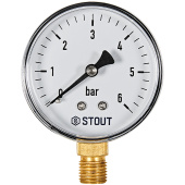 Манометр радиальный Stout 63 мм, 0-6 бар, подключение 1/4