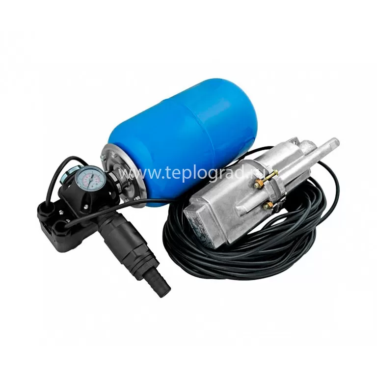 Насосная станция АКВАРОБОТ М 24-40 В на базе вибрационного насоса БАВЛЕНЕЦ, реле давления и расширительного бака объемом 24 литра используется для организации автоматического водоснабжения из колодцев, резервуаров и не глубоких скважин.