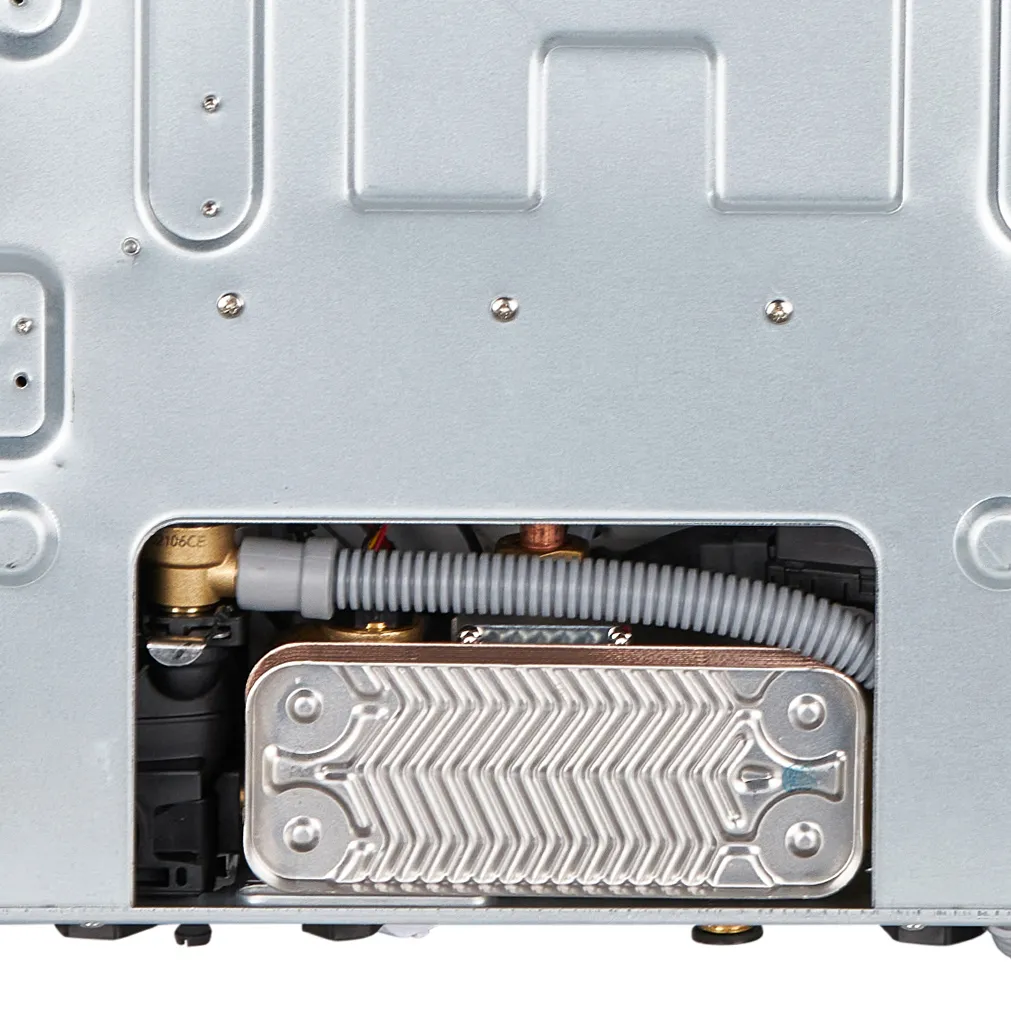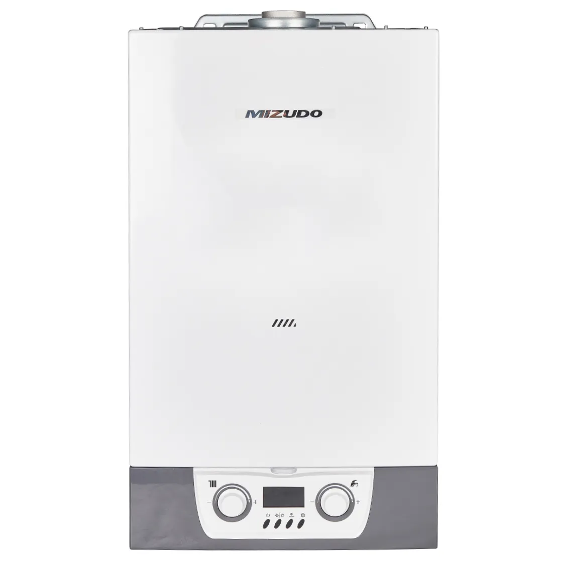 Настенный газовый двухконтурный котел MIZUDO Maestro Lux M24Т 24 кВт с закрытой камерой сгорания и цифровая шиной OpenTherm. Первичный теплообменник изготовлен из высококачественной меди с антикоррозийным покрытием, вторичный теплообменник из нержавеющей стали.