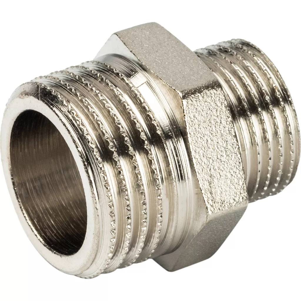 Ниппель переходной 1/2x3/8 НН никелированный Stout