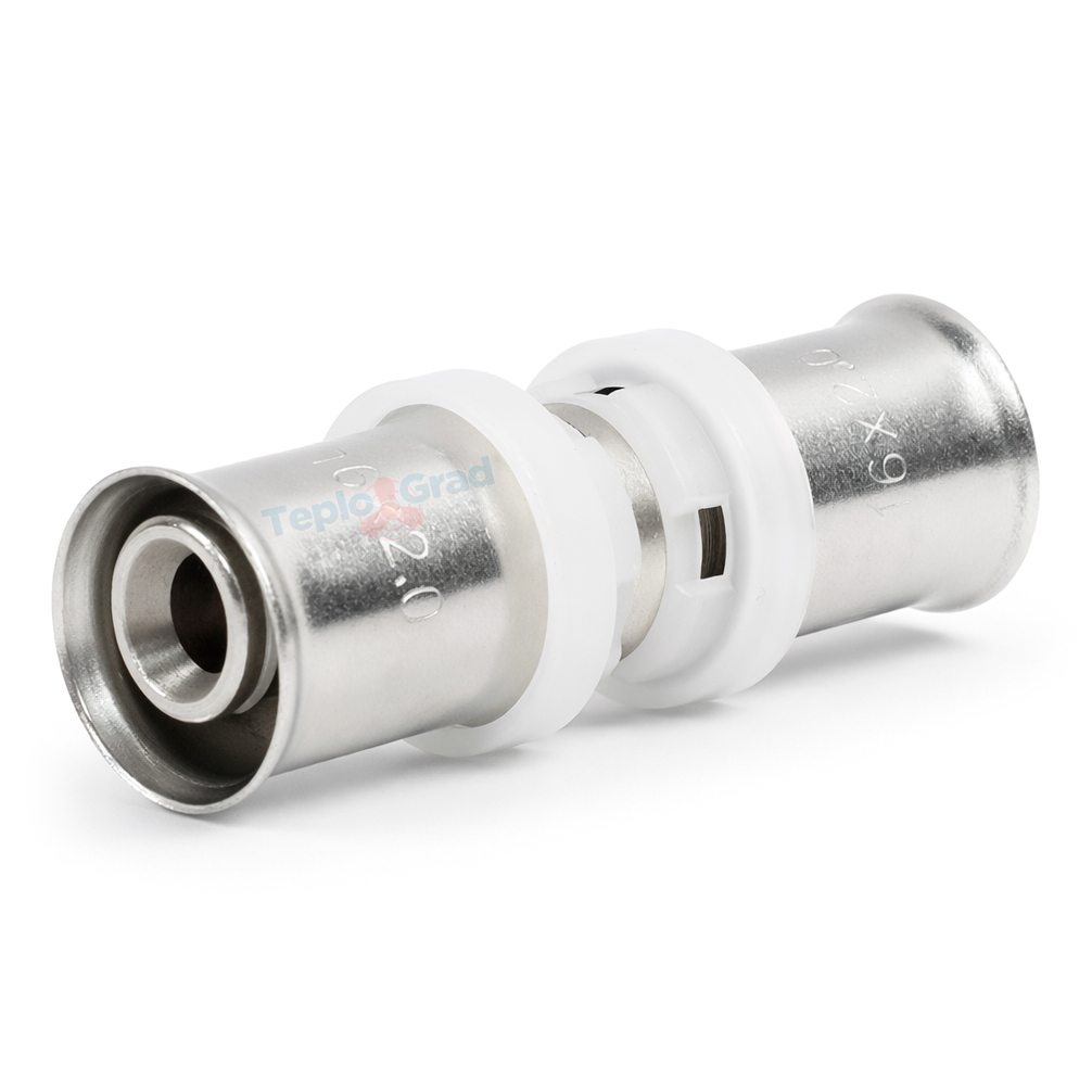 Пресс соединение TIM 16x16 - эффективный и надежный способ соединения металлополимерных труб при монтаже систем отопления и водоснабжения. Корпус фитинга изготовлен из латуни, а пресс-гильза – из нержавеющей стали.