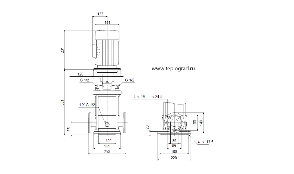 - Подключение к системе фланцевое DN25/32;