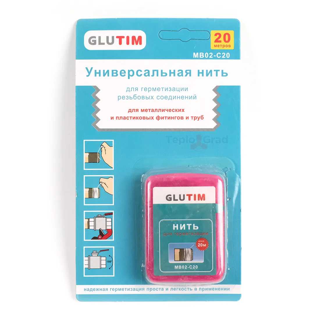 Полиамидная нить GLUTIM 20 метов MB02-C20 предназначена для уплотнения резьбовых соединении труб и фитингов в системах водоснабжения, отопления и бытового газоснабжения. Применяется для герметизации цилиндрической и конической резьбы при монтаже инженерных систем.