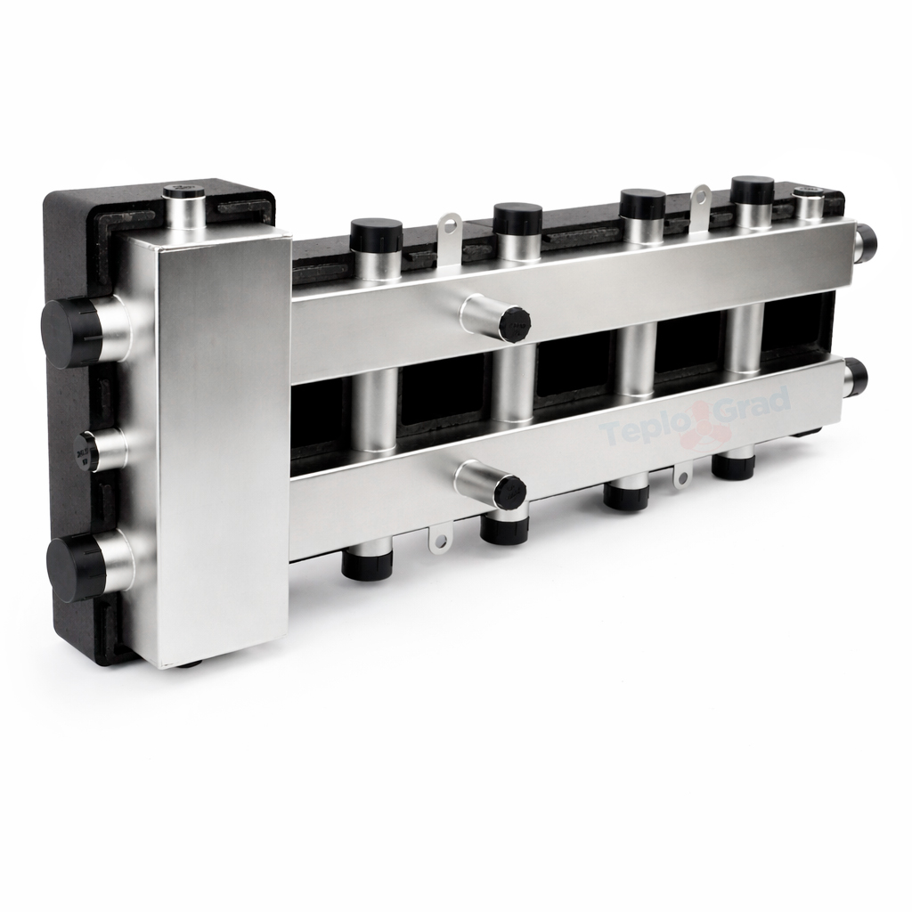 Гидравлический разделитель Zeissler с коллектором на 5 контуров с теплоизоляцией предназначен для организации систем отопления с тремя независимыми контурами. Изготовлен из нержавеющей стали AISI 304, что гарантирует долговечность, устойчивость к коррозии и стабильную работу при высоких температурах и давлении. Конструкция совмещает функции гидравлического разделителя и коллектора, обеспечивая равномерное распределение теплоносителя между контурами и эффективную работу котельного оборудования суммарной мощностью до 70 кВт. Коллектор можно устанавливать с подключением котла как слева, так и справа, что делает монтаж гибким и удобным.