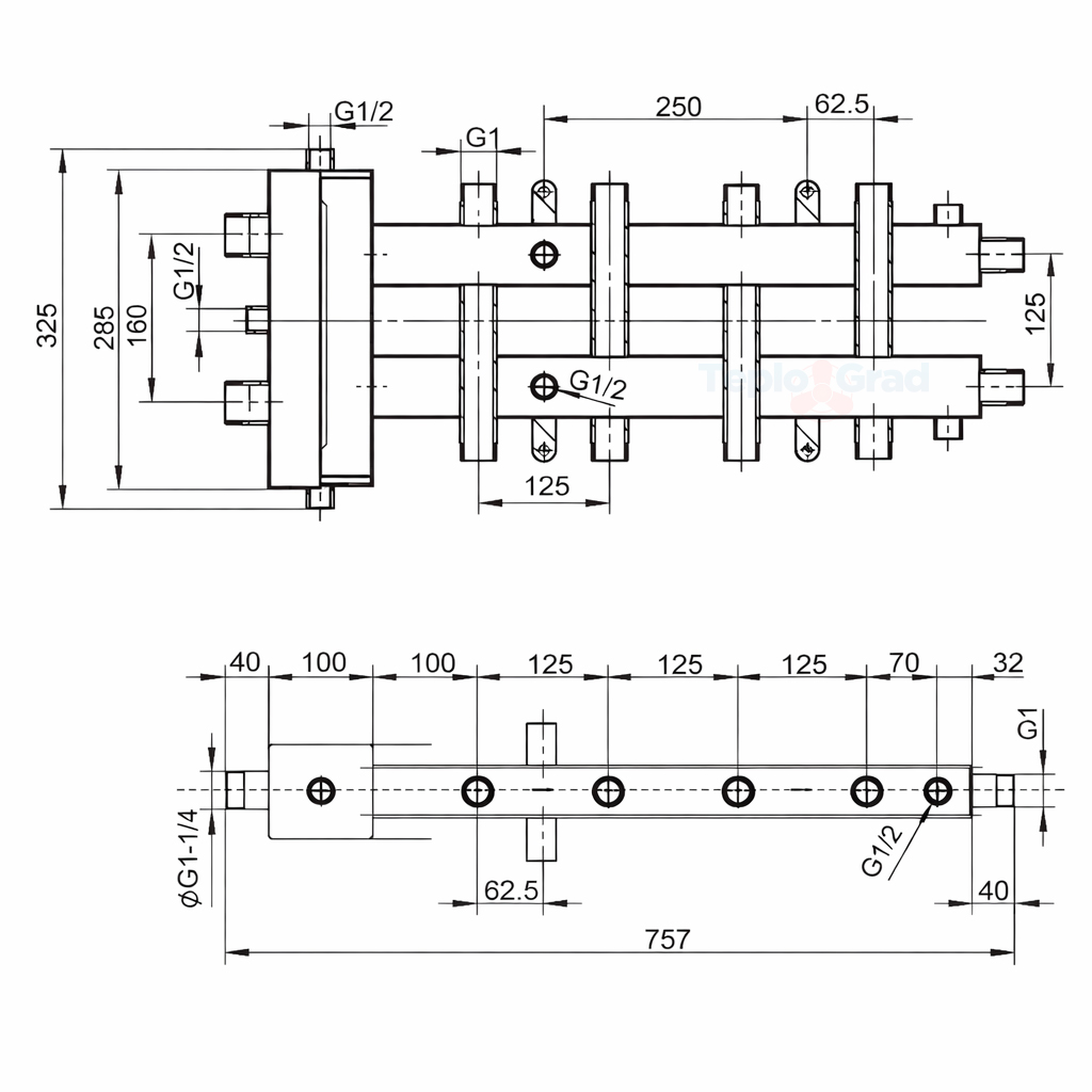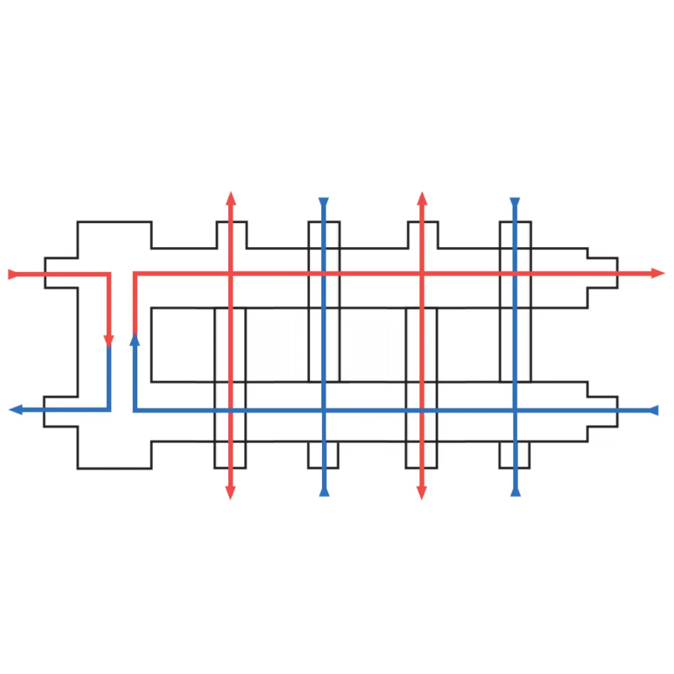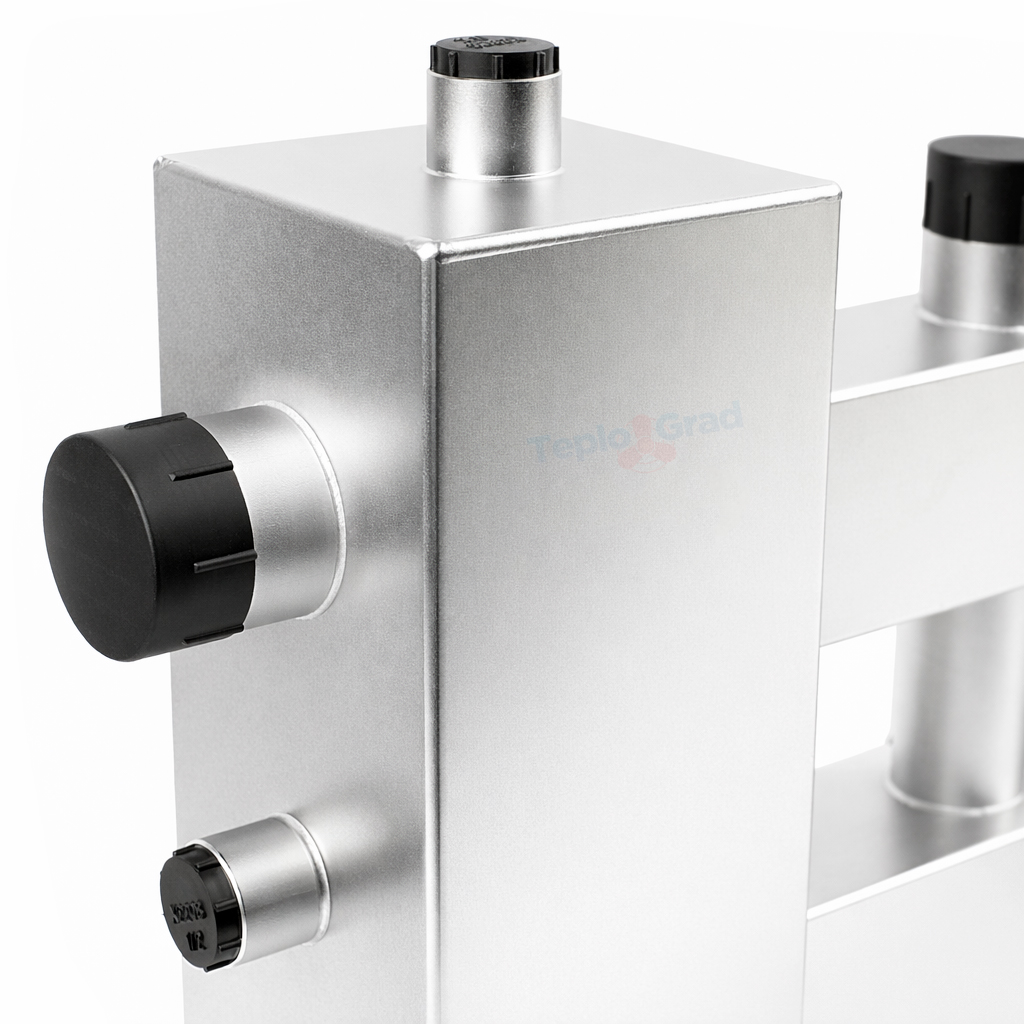 - Совмещает функции гидравлического разделителя и коллектора в одном корпусе;