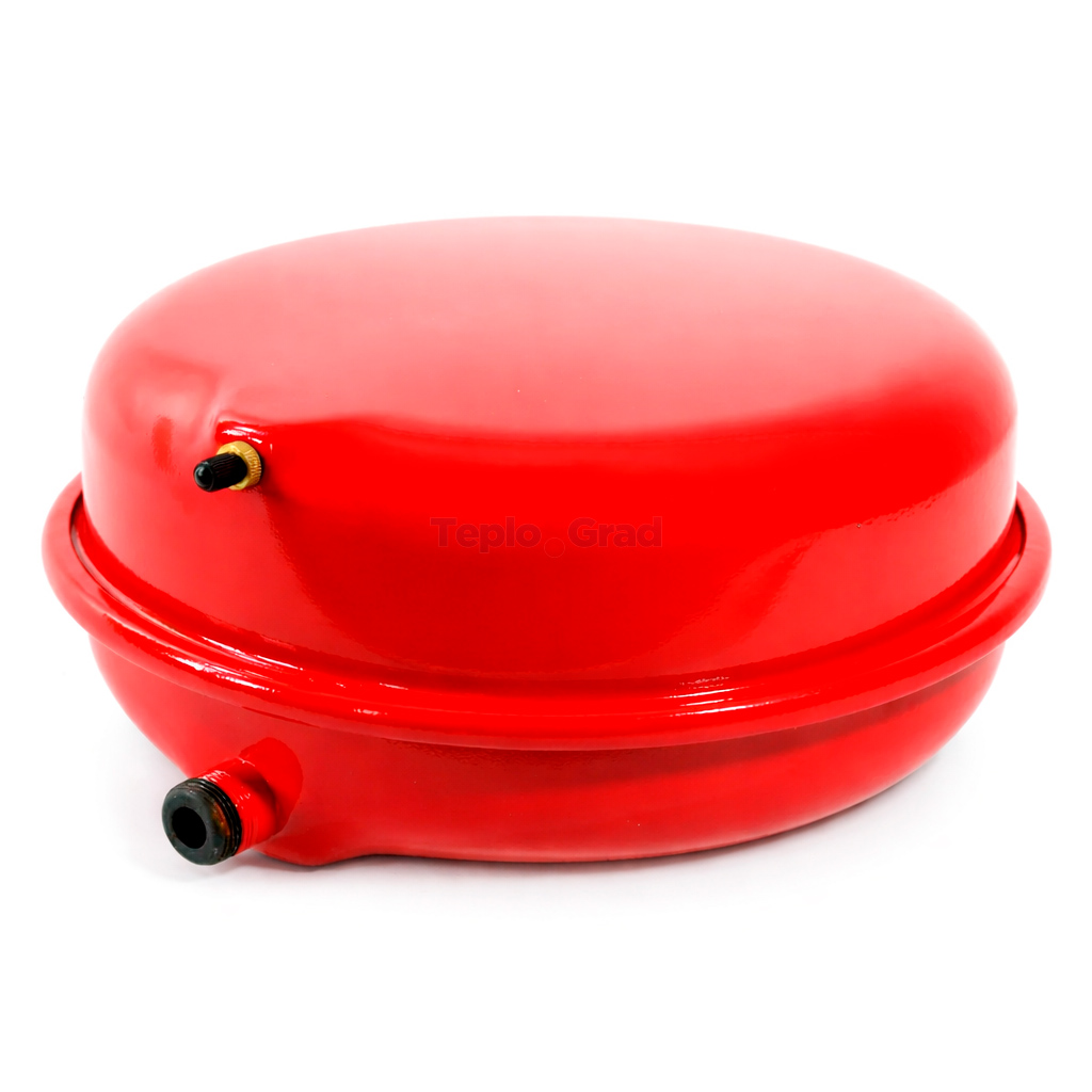 Конструкция состоит из стальной емкости, разделенной внутри фиксированной диафрагменной мембраной из EPDM на две камеры: жидкостную и воздушную. При нагреве избыток теплоносителя поступает в бак, растягивая мембрану, а при остывании сжатый воздух вытесняет жидкость обратно в систему, предотвращая аварийные скачки давления. Бак рассчитан на работу с водой и гликолевыми смесями (с концентрацией до 50%).