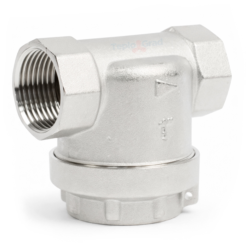 Фильтр механической очистки TIM 1" предназначен для удаления механических примесей из потока рабочей среды. Применяется в системах горячего и холодного водоснабжения, а также в сетях, транспортирующих сжатый воздух, масло и жидкие углеводороды при температуре до 110 °C. Корпус фильтра выполнен из никелированной латуни, установка производится на горизонтальном участке трубопровода с направлением пробки вниз.