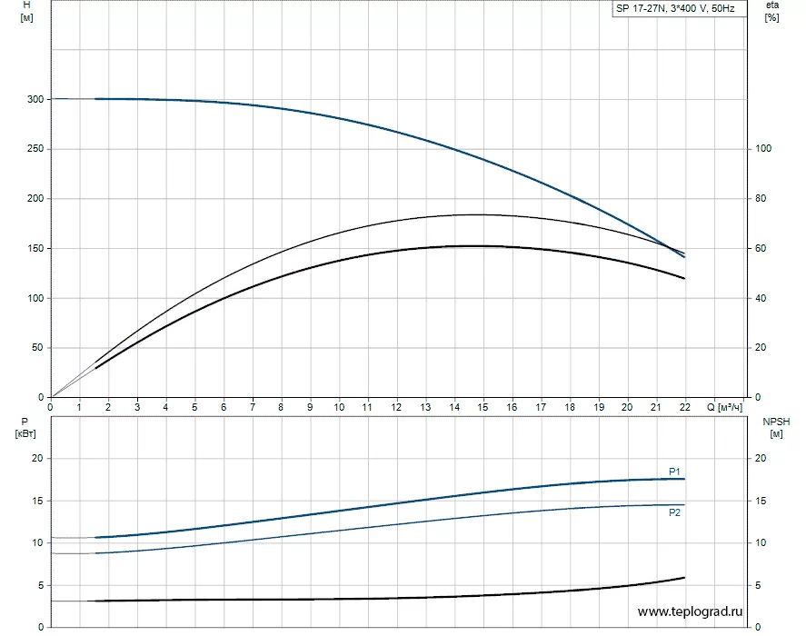 - Номинальный напор 222 метров;