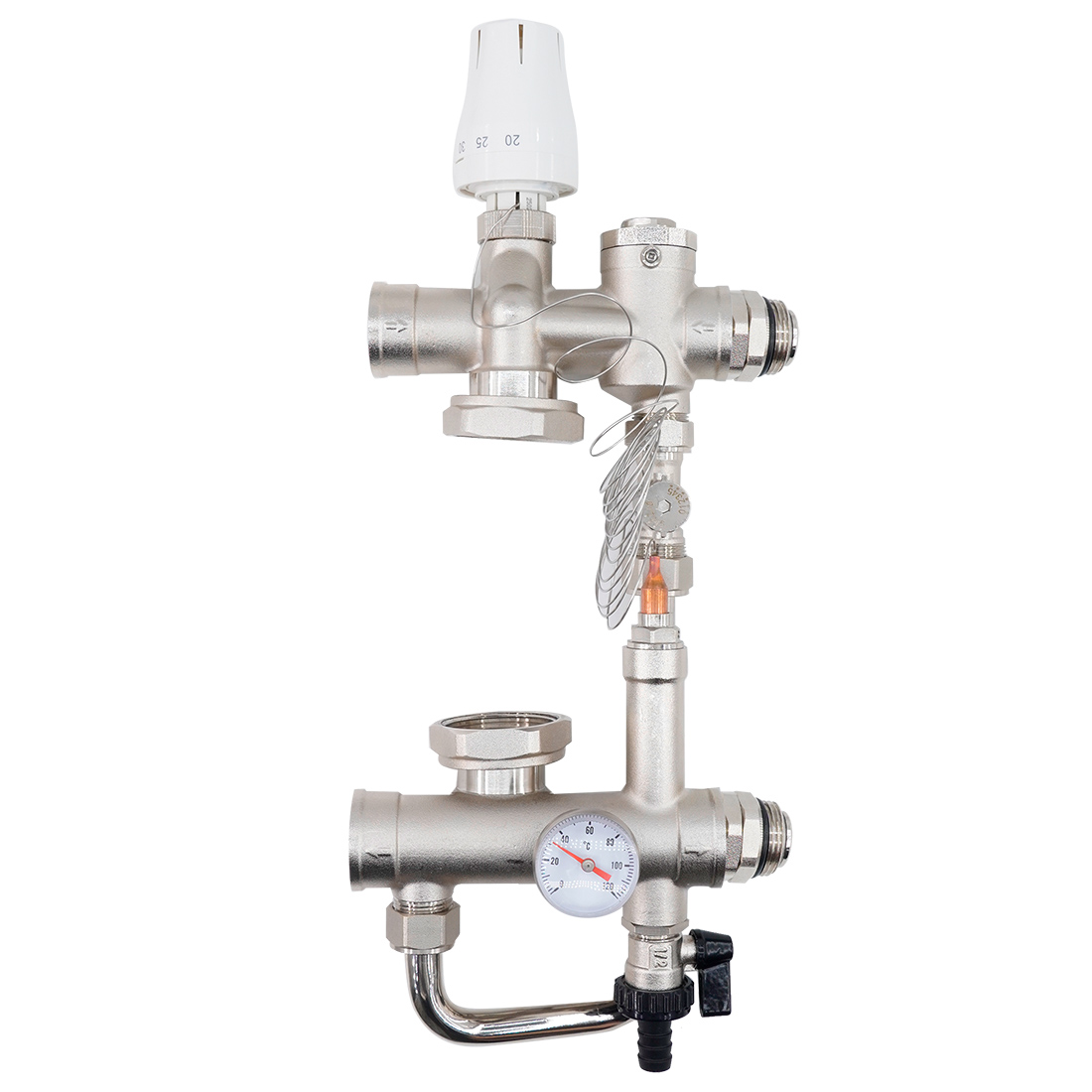 Смесительныи узел Rommer проходнои с термоголовкои и перепускным клапаном предназначен для создания циркуляционного контура и поддержания заданного температурного режима в низкотемпературных системах отопления. Применяется в системах теплого пола, теплых стен и антиобледенения, эксплуатируется в закрытых системах отопления.