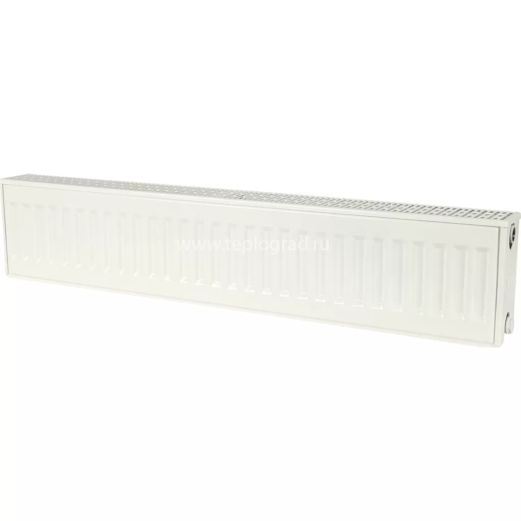 Стальной радиатор Kermi Profil-K FKO 22/200/1000 (высота 200 мм, ширина 1000 мм, толщина 100 мм) с боковым подключением предназначен для установки в централизованных и автономных системах отопления. Состоит из двух панелий, двух конвективных оребрений и верхней декоративной решетки. Мощность радиатора составляет 850 Вт, что достаточно для обогрева бытового помещения площадью до 8 м2.