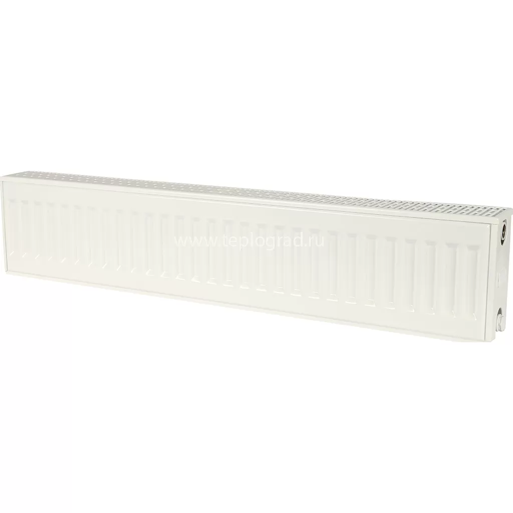 Стальной радиатор Kermi Profil-K FKO 22/200/1100 (высота 200 мм, ширина 1100 мм, толщина 100 мм) с боковым подключением предназначен для установки в централизованных и автономных системах отопления. Состоит из двух панелий, двух конвективных оребрений и верхней декоративной решетки. Мощность радиатора составляет 935 Вт, что достаточно для обогрева бытового помещения площадью до 9 м2.