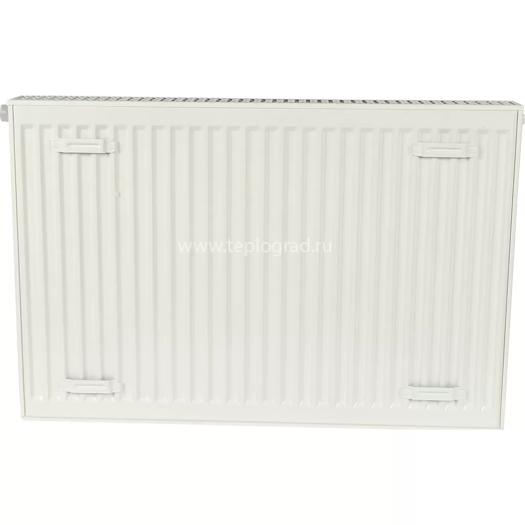 Стальной радиатор Kermi Profil-V FTV 22/600/1400 (высота 600 мм, ширина 1400 мм, толщина 100 мм) с нижним подключением предназначен для установки в централизованных и автономных системах отопления. Состоит из двух панелий, двух конвективных оребрений и верхней декоративной решетки. Мощность радиатора составляет 2929 Вт, что достаточно для обогрева бытового помещения площадью до 29 м2. Поставляется в комплекте с настенными креплениями.