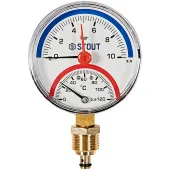 Термоманометр радиальный Stout 80 мм, 0-10 бар, 0-120C, подключение 1/2