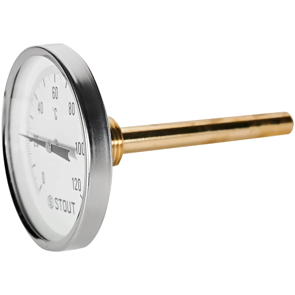 Термометр биметаллический Stout 80 мм, гильза 100 мм, 0-120С