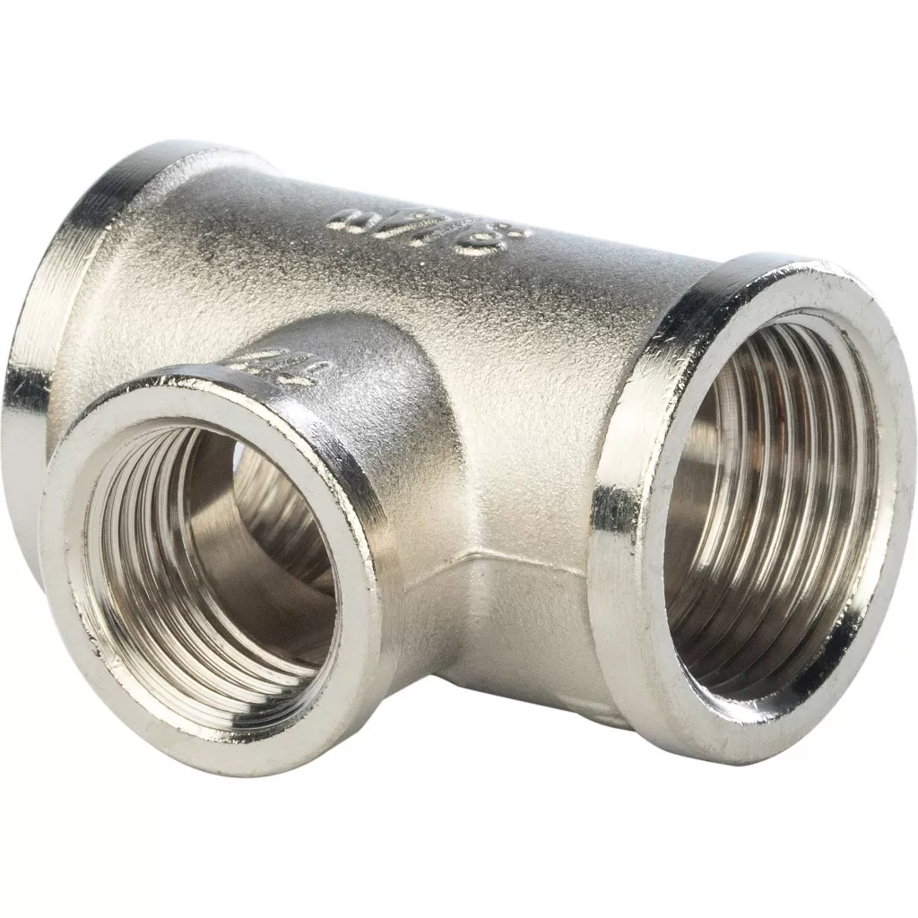 Тройник 3/4x1/2x3/4 ВВ Stout - латунный никелированный фитинг с вн.-вн.-вн. резьбой.
